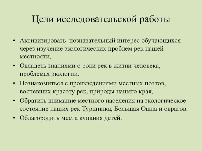 Активизировать познавательный интерес обучающихся через изучение экологических проблем рек