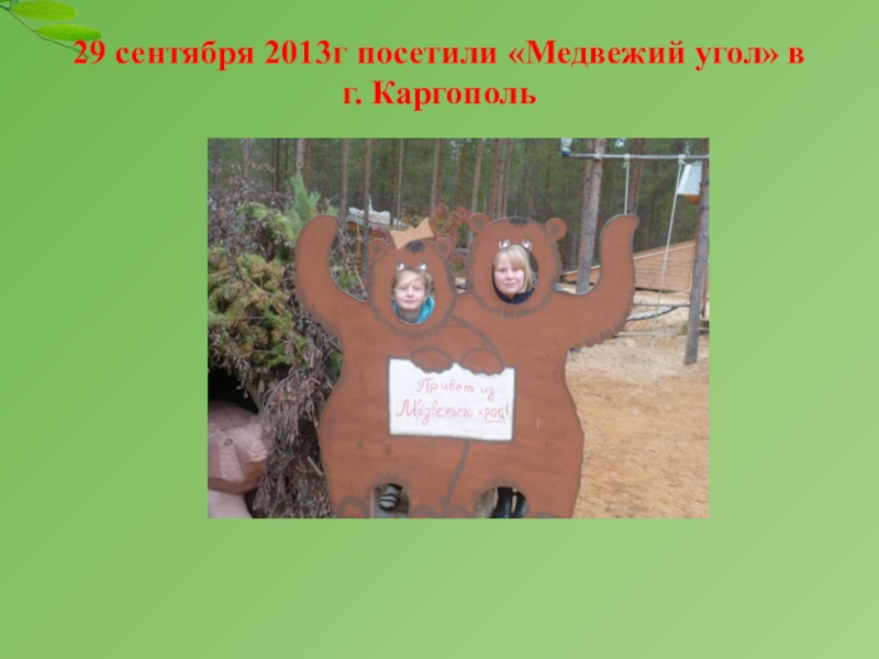 Слайд 229 сентября 2013г посетили «Медвежий угол» в г. Каргополь