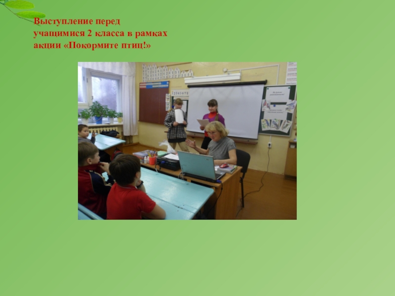 Слайд 4Выступление перед учащимися 2 класса в рамках акции «Покормите птиц!»