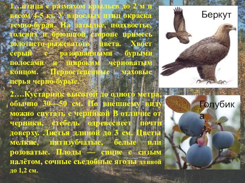 2….Кустарник высотой до одного метра, обычно 30—50 см. По внешнему виду можно спутать с черникой В отличие от черники, стебель одревеснеет почти доверху. Листья длиной до 3 см. Цветы мелкие, пятизубчатые, белые или розоватые. Плоды — синие с сизым налётом, сочные съедобные ягоды длиной до 1,2 см.