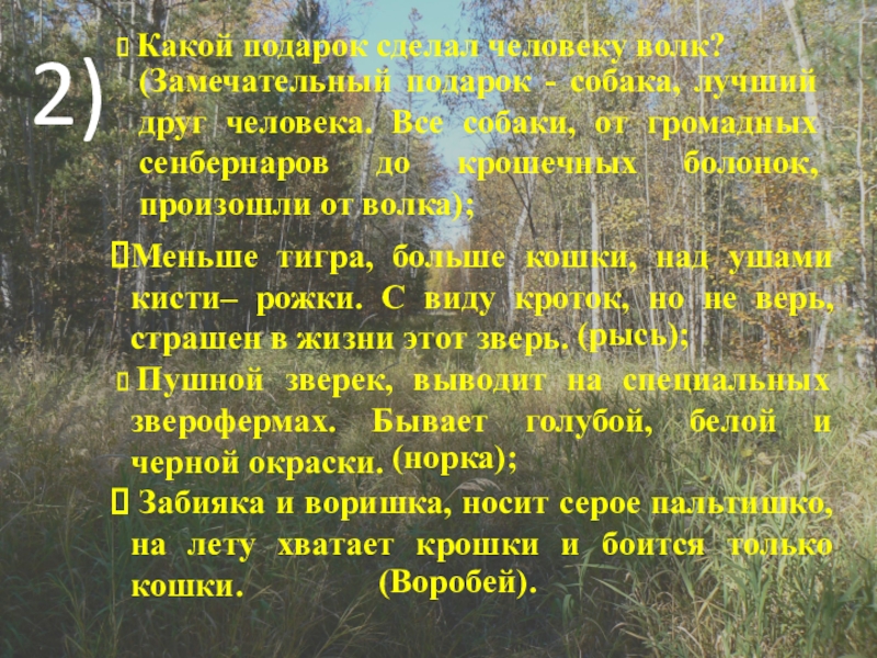 (Замечательный подарок - собака, лучший друг человека. Все собаки, от громадных сенбернаров до крошечных болонок, произошли от волка);