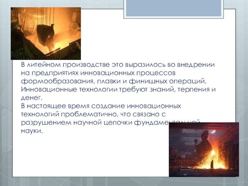 Слайд 4В литейном производстве это выразилось во внедрении на предприятиях инновационных процессов