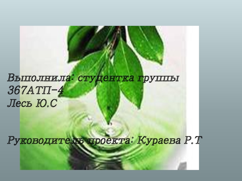 Слайд 7Выполнила: студентка группы 367АТП-4 Лесь Ю.С Руководитель проекта: Кураева Р.Т