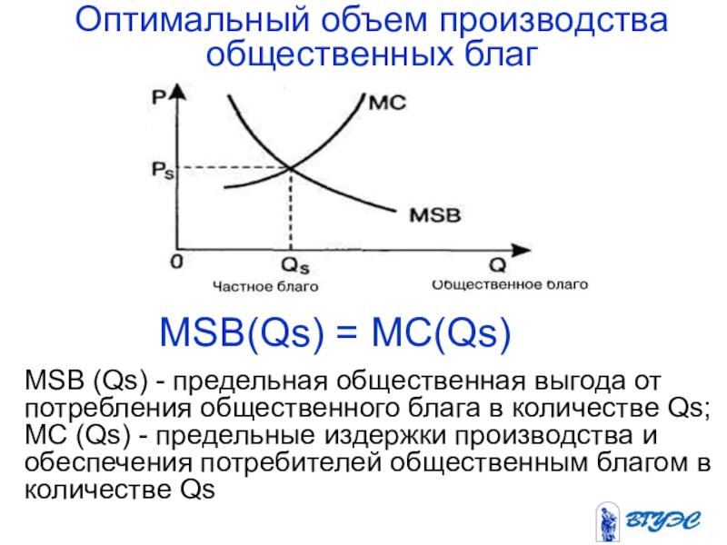 MSB (Qs) - предельная общественная выгода от потребления общественного блага в количестве Qs;