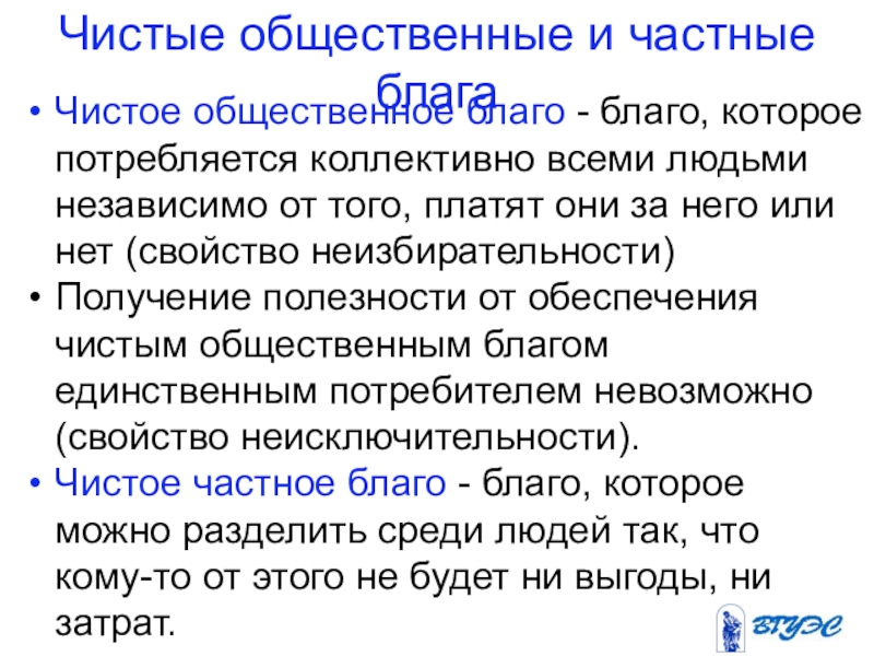 Слайд 41Чисто общественное благо (pure public good) – благо, которое потребляется коллективно