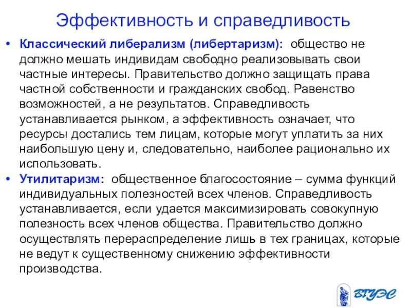 требованиями экономического роста и равенства, эффективностью и справедливостью.