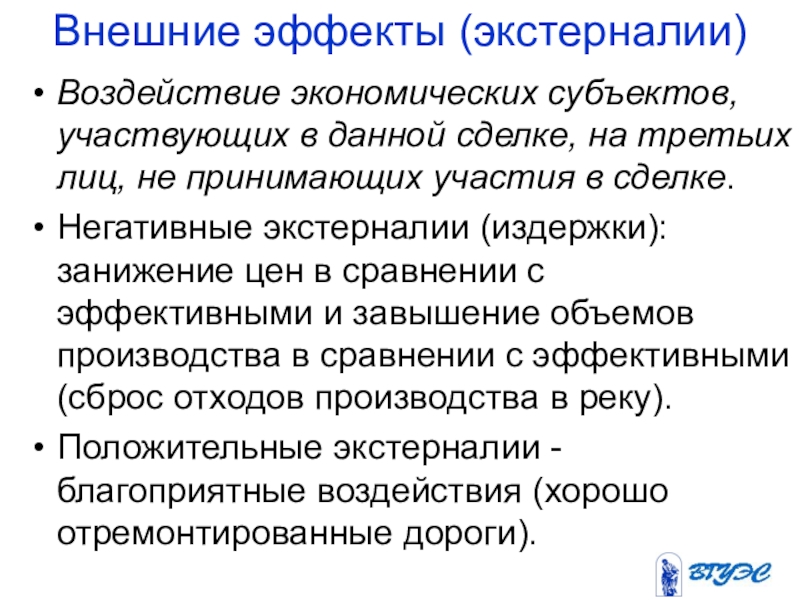 Слайд 27Положительный внешний эффект (positive externality) возникает в случае, если деятельность одного