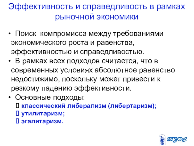 Слайд 18Эффективность и справедливость в рамках рыночной экономики