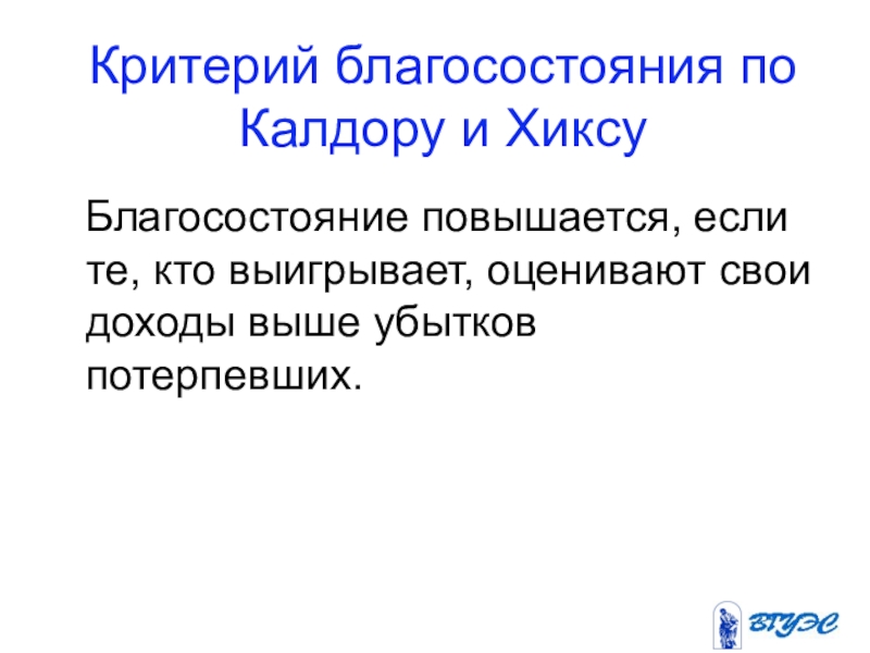 Слайд 15Критерий благосостояния по Калдору и Хиксу