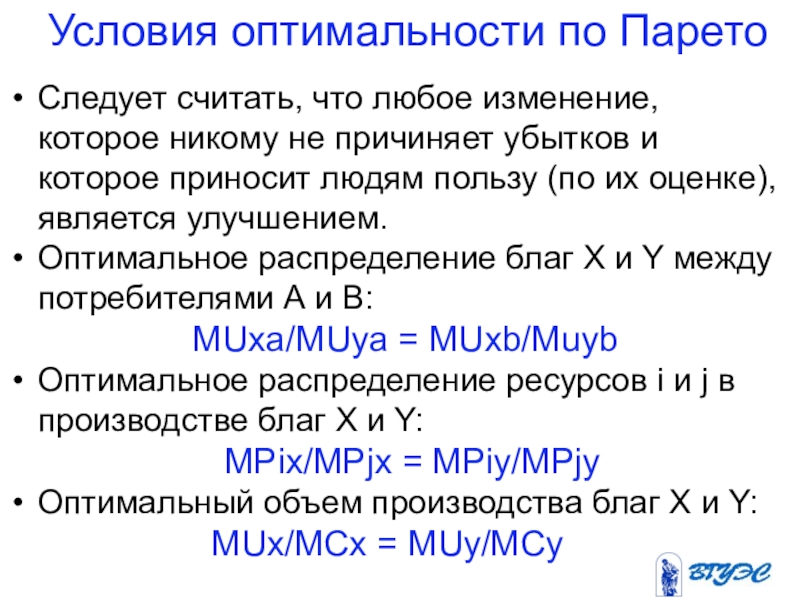 Распределение (обмен) является Парето-эффективным, если блага нельзя перераспределить так,