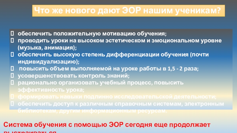 Система обучения с помощью ЭОР сегодня еще продолжает выстраиваться