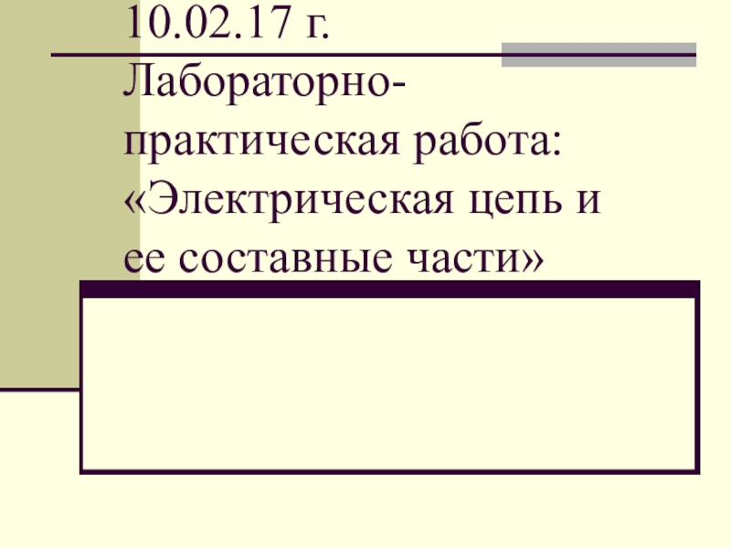 Слайд 110.02.17 г. Лабораторно-практическая работа: «Электрическая цепь и ее составные части»