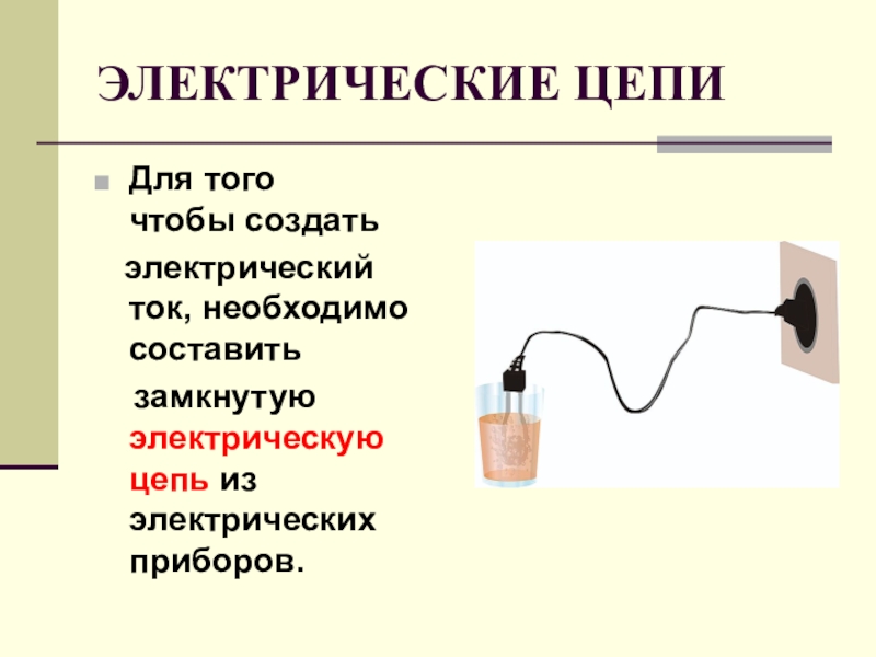 ЭЛЕКТРИЧЕСКИЕ ЦЕПИ Для того чтобы создать   электрический ток, необходимо составить   замкнутую электрическую цепь из электрических приборов.