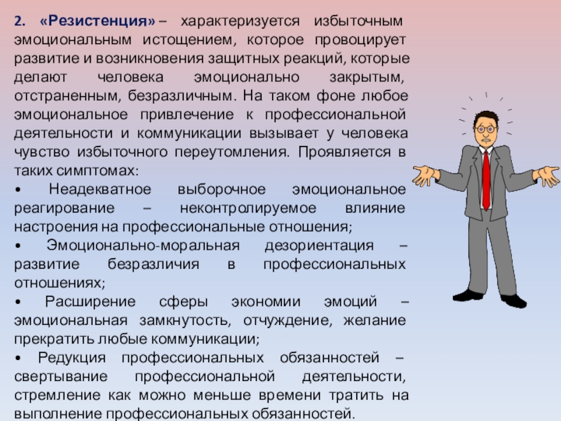 Слайд 52. «Резистенция» – характеризуется избыточным эмоциональным истощением, которое провоцирует развитие и возникновения