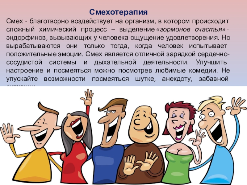 Смех - благотворно воздействует на организм, в котором происходит сложный химический