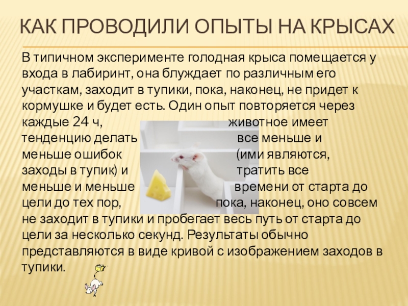 2) Изучить методику, разработанную учеными для изучения поведения крыс;