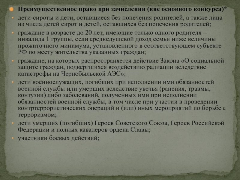 справка или копия документа, дающего право на поступление в училище на льготных основаниях (при наличии);