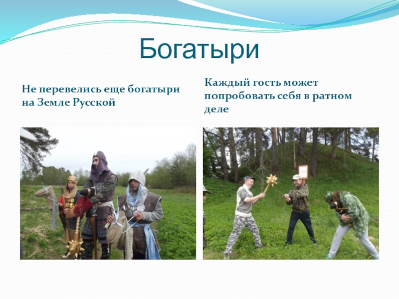Богатыри Не перевелись еще богатыри на Земле РусскойКаждый гость может попробовать себя в ратном деле