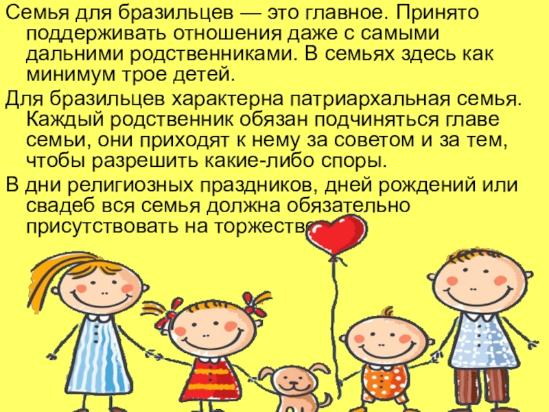 Слайд 4Семья для бразильцев — это главное. Принято поддерживать отношения даже с
