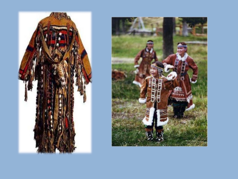 Слайд 31Верхняя одежда эвенков отличалась большим многообразием.Основным материалом для эвенкийской одежды служит