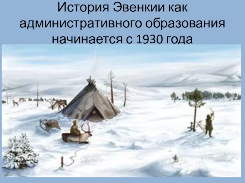 Слайд 26История Эвенкии как административного образования начинается с 1930 года