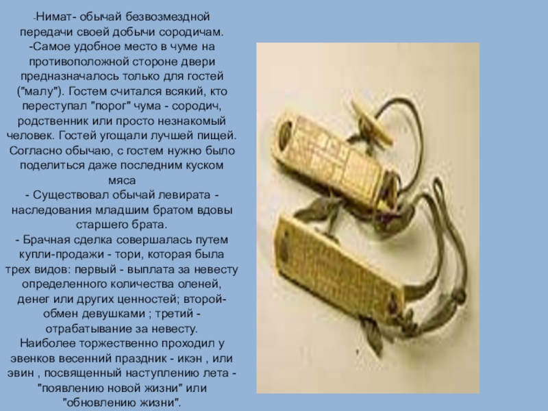 Слайд 42-Нимат- обычай безвозмездной передачи своей добычи сородичам.