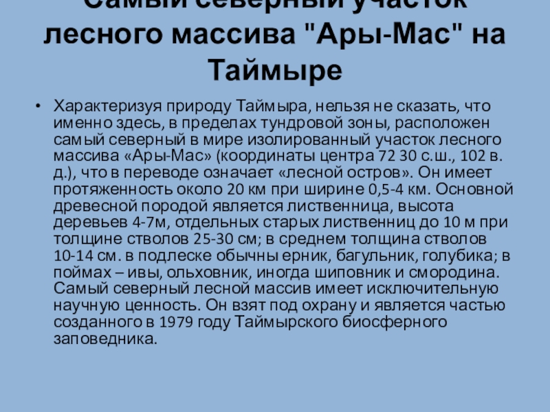 Слайд 24Самый северный участок лесного массива "Ары-Мас" на Таймыре