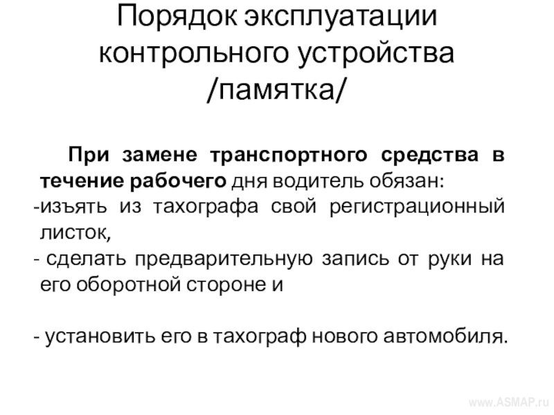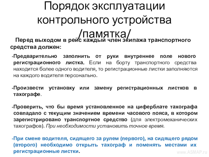 При смене водителя, сидящего за рулем (первого), на сидящего рядом (второго) необходимо открыть тахограф и поменять местами их регистрационные листки.