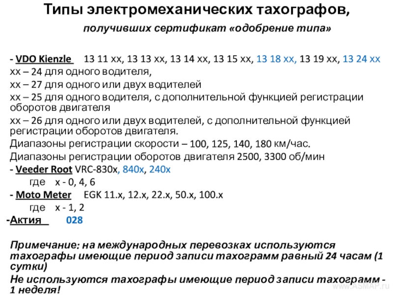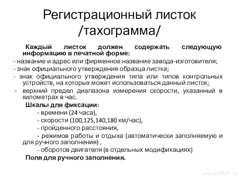 Проверить соответствие типа используемых регистрационных листков и тахографа установленного на транспортном средстве.