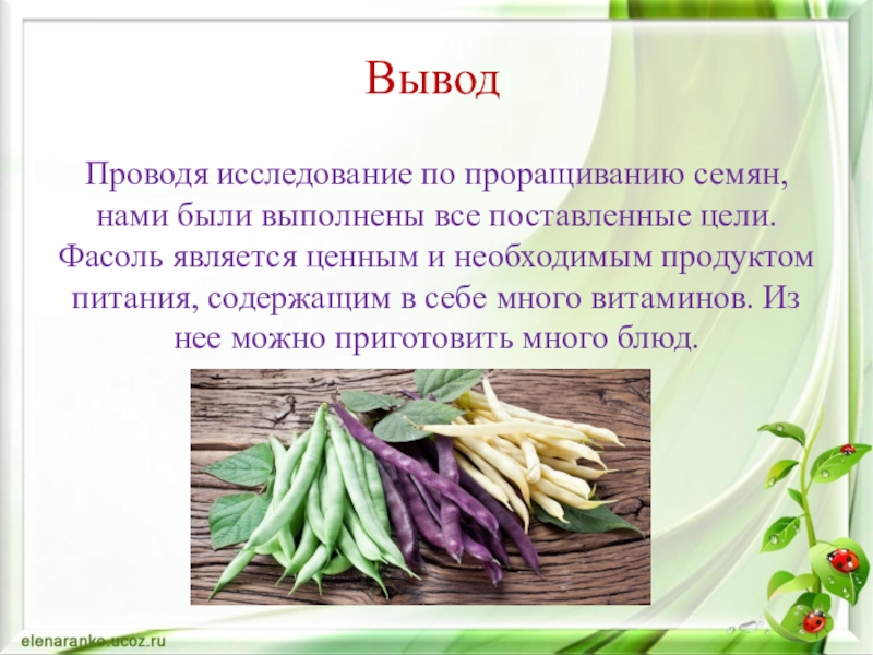 ТЕМА:«МОЖНО ЛИ ВЫРАСТИТЬ ФАСОЛЬ ОСЕНЬЮ?»