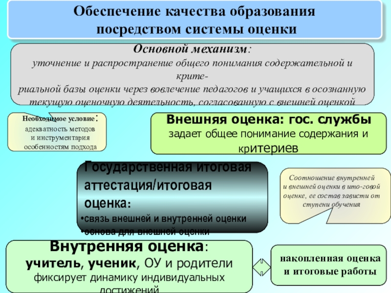 связь внешней и внутренней оценки