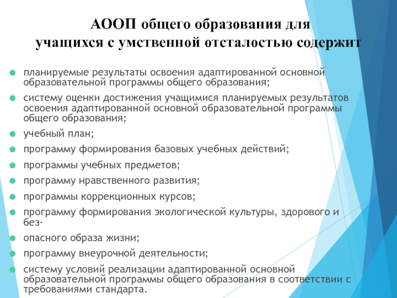 планируемые результаты освоения адаптированной основной образовательной программы общего образования;