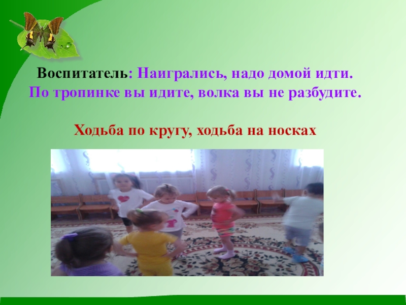 Слайд 22Воспитатель: Наигрались, надо домой идти.