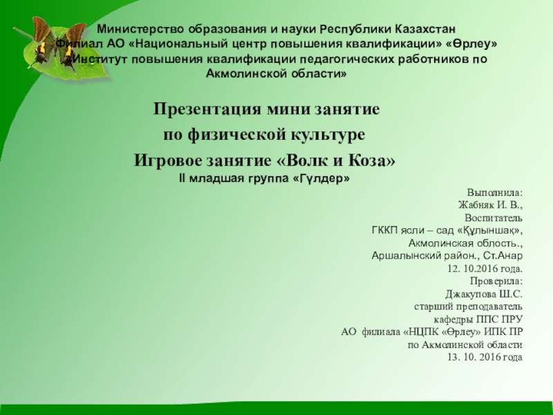 «Институт повышения квалификации педагогических работников по Акмолинской области»
