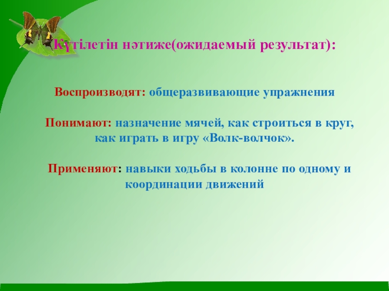Понимают: назначение мячей, как строиться в круг, как играть в игру «Волк-волчок».