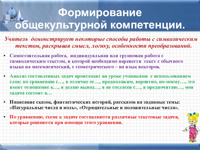 Слайд 8Математика нужна учащимся для формирование духовного облика, развития