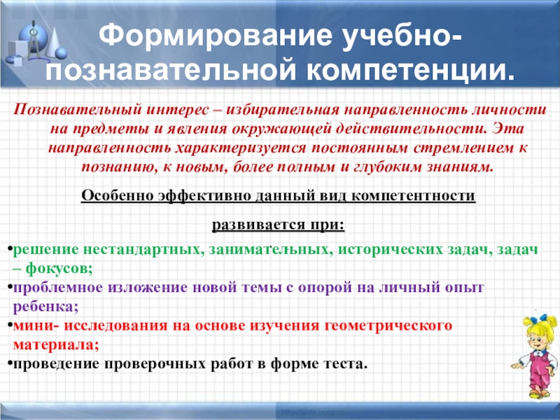 Все эти качества можно успешно формировать в школе, используя компетентностный подход в обучении любому предмету, в том числе и математике, что является одним из личностных и социальных смыслов образования.