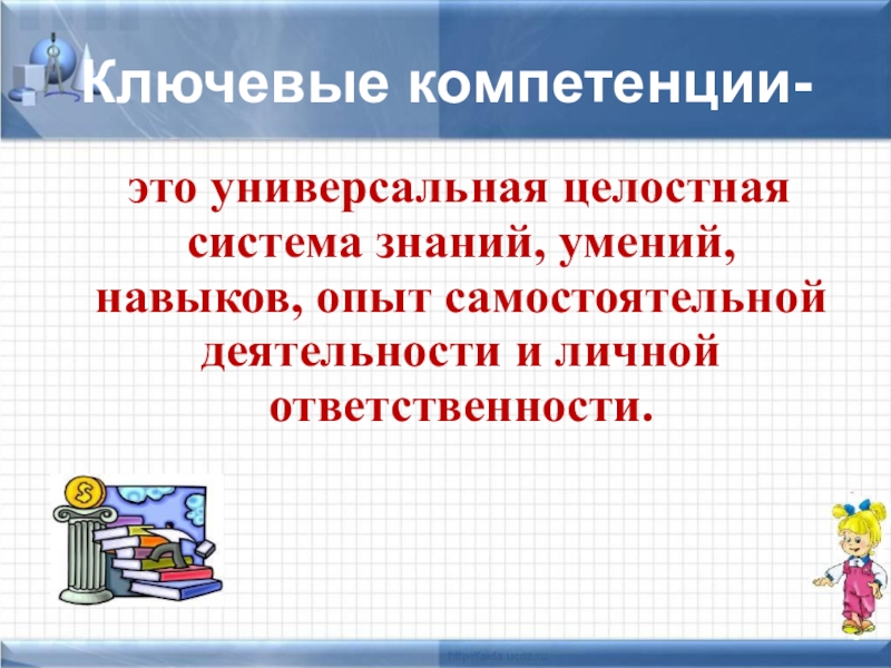 У учащихся формируются ключевые компетенции – универсальная целостная система знаний, умений, навыков, опыт самостоятельной деятельности и личной ответственности, и начинать их формировать нужно с 5 класса.