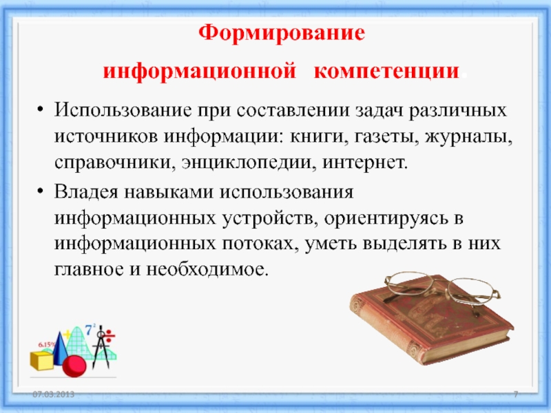 Владея навыками использования информационных устройств, ориентируясь в информационных потоках, уметь выделять в них главное и необходимое.