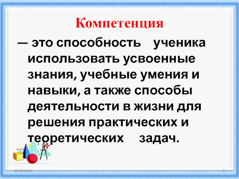 и навыки, а также способы деятельности в жизни для решения практических и теоретических задач.