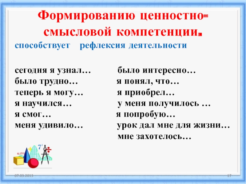 Слайд 17Формированию ценностно-смысловой компетенции.