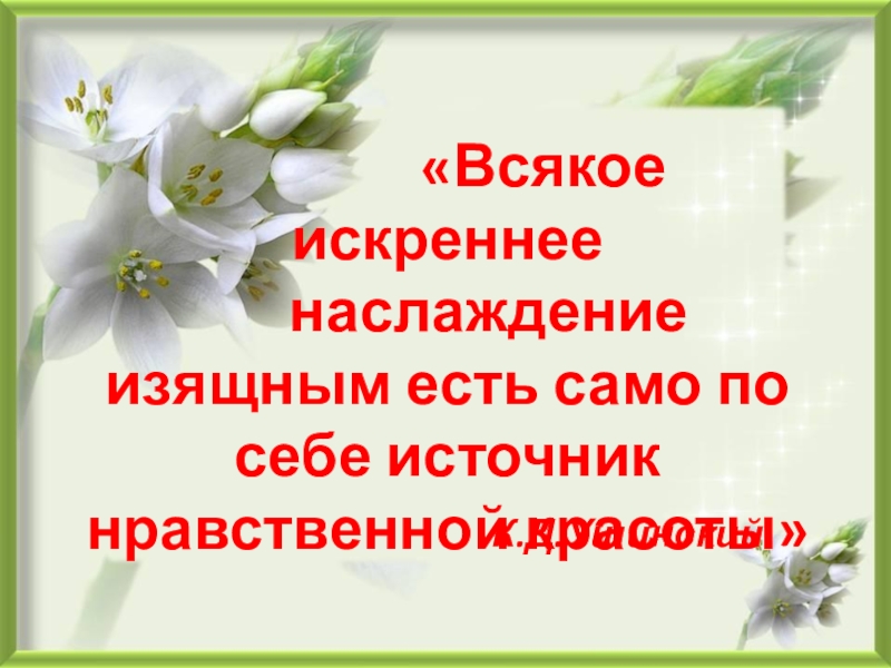 наслаждение изящным есть само по себе источник нравственной красоты»