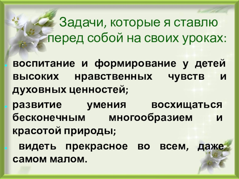 Слайд 7 Задачи, которые я ставлю перед собой на своих уроках: