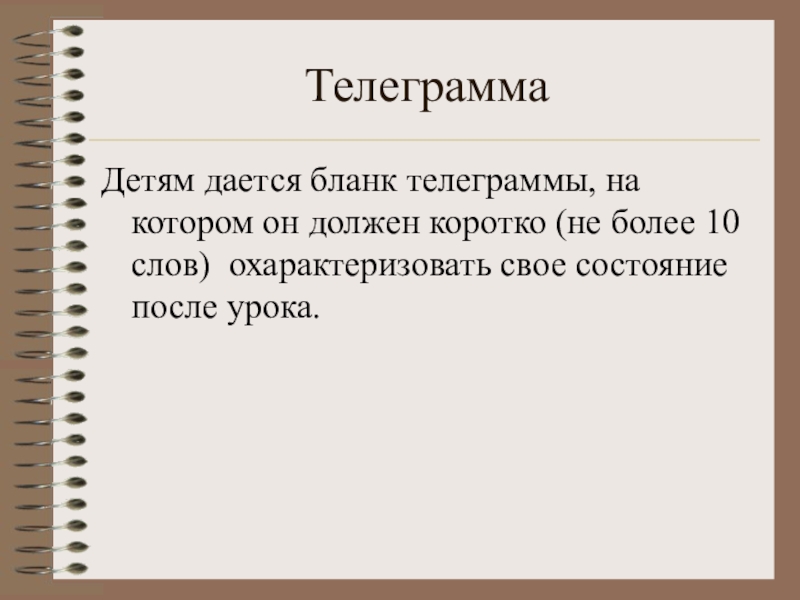 Детям дается бланк телеграммы, на котором он должен коротко (не более