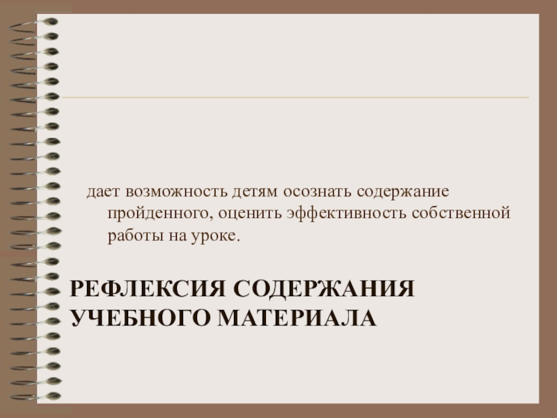 дает возможность детям осознать содержание пройденного, оценить эффективность