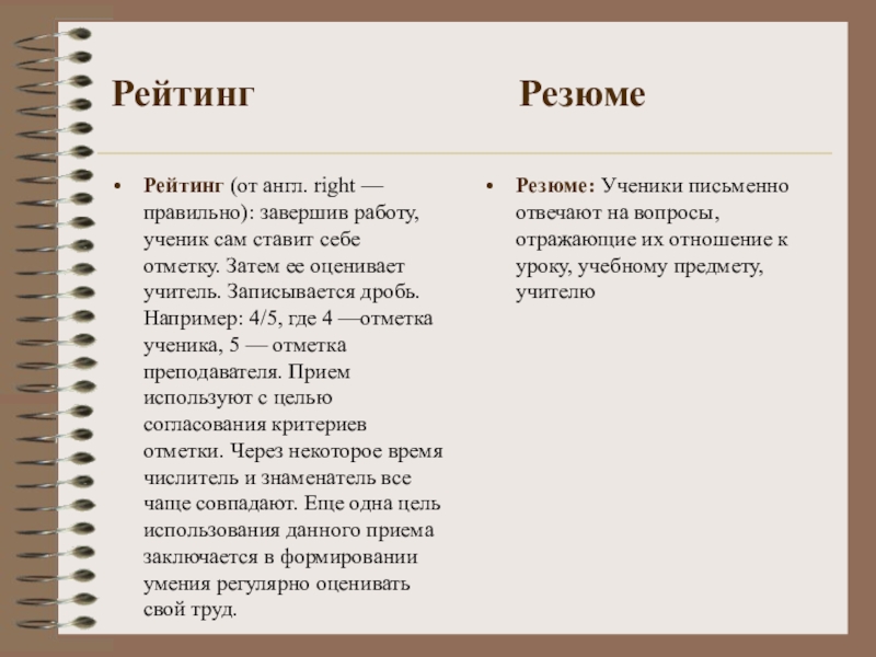 Рейтинг (от англ. right — правильно): завершив работу, ученик сам ставит себе