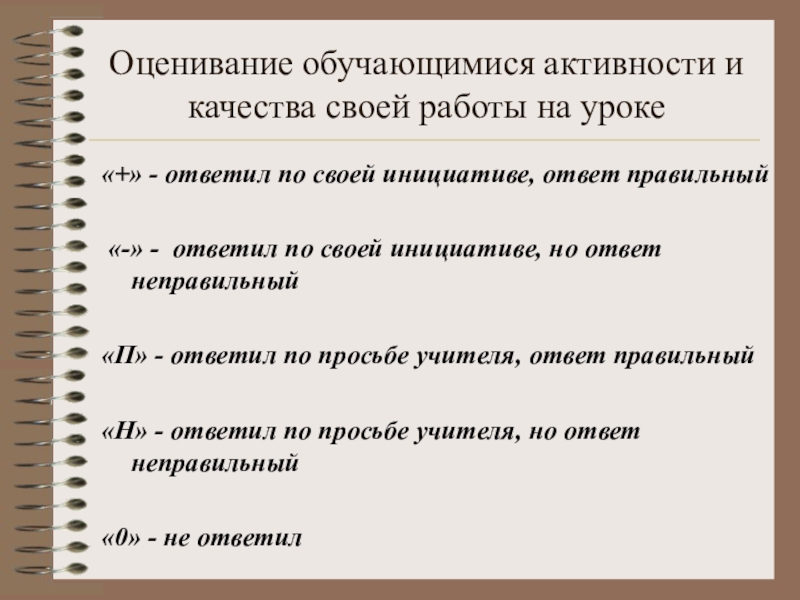 Слайд 17Оценивание обучающимися активности и качества своей работы на уроке