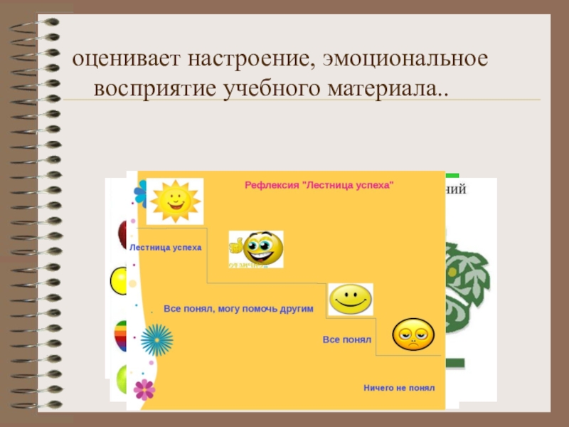 Слайд 10оценивает настроение, эмоциональное восприятие учебного материала..