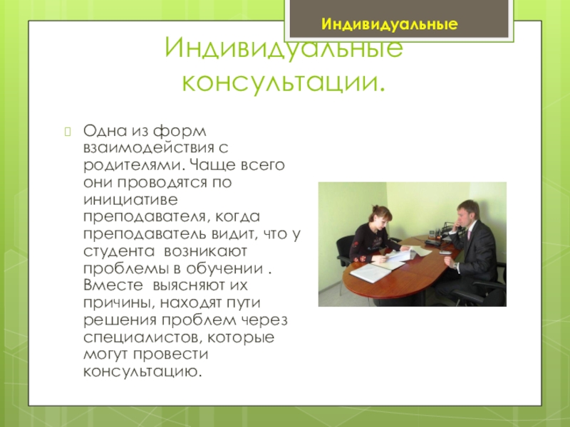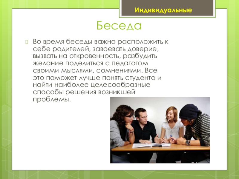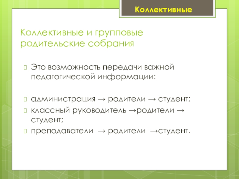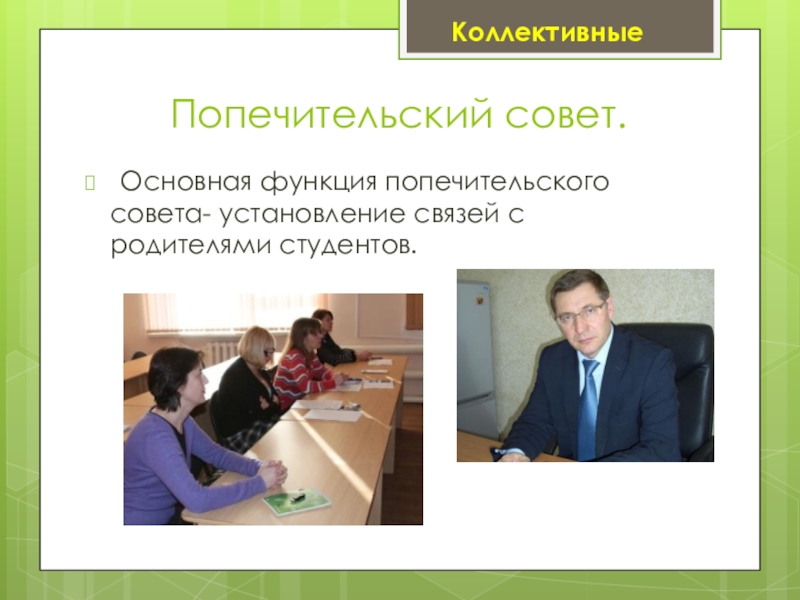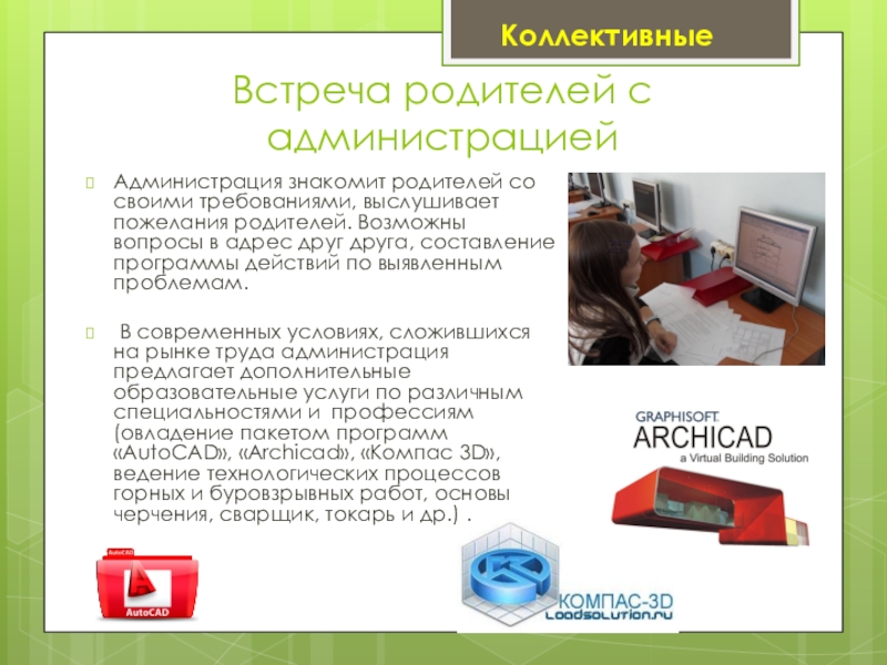 В основном организован для родителей студентов первых курсов, где мы знакомим родителей с Уставом учебного заведения, правилами внутреннего распорядка, с условиями адаптации студентов, помогаем вырабатывать единые подходы к воспитанию их детей: