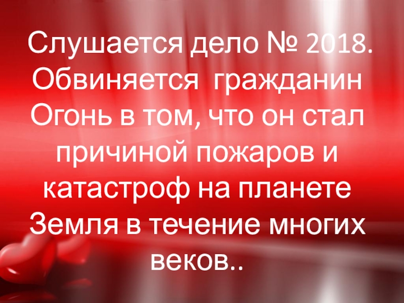 Слайд 12Слушается дело № 2018. Обвиняется  гражданин Огонь в том, что он